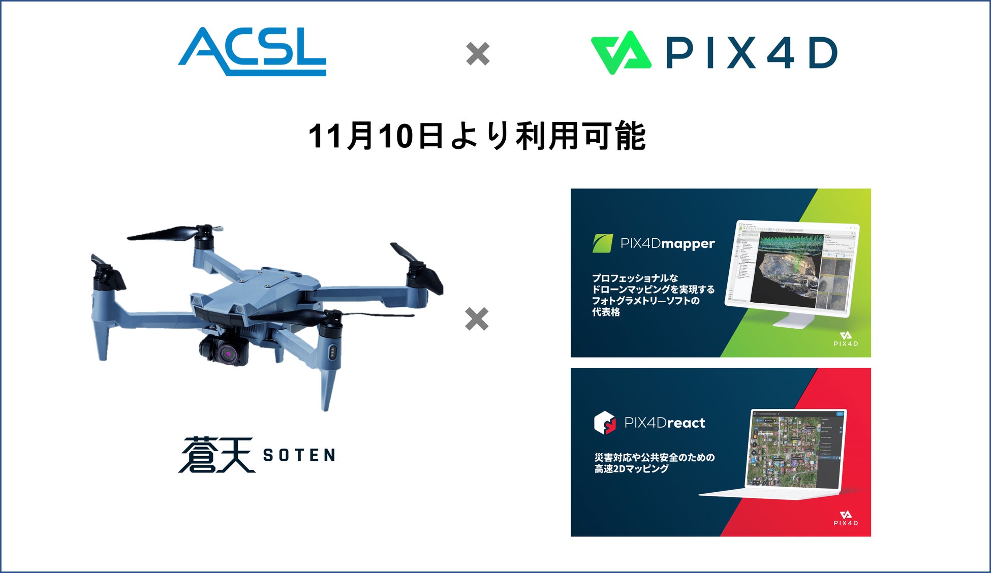 ACSL、セキュアな国産ドローンSOTEN(蒼天)でPIX4DmapperおよびPIX4Dreactが利用可能に