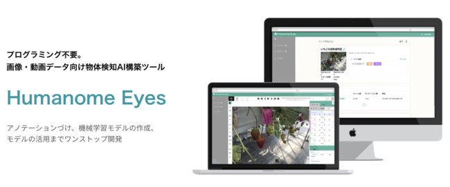 組織のDX化が社会全体で進む中、データサイエンス人材の不足が大きな問題となっています。専門人材育成や開発外注の前に、まず自社内で「今、本当に欲しいAI」を見極めたい。当社はこのような企業・組織の要望に応える、AI開発ノーコードツール「Humanome Eyes」「Humanome CatData」を開発しています。Humanome Eyes は画像・動画を利用した画像認識(物体検知)AIを開発するノーコードツールです。