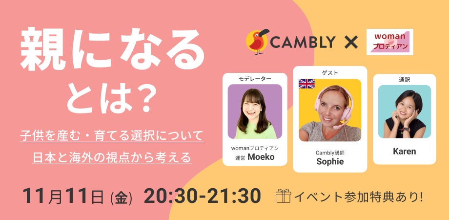 参加無料!11月11日 オンライン英会話 CAMBLY X womanプロティアン コラボイベント開催!