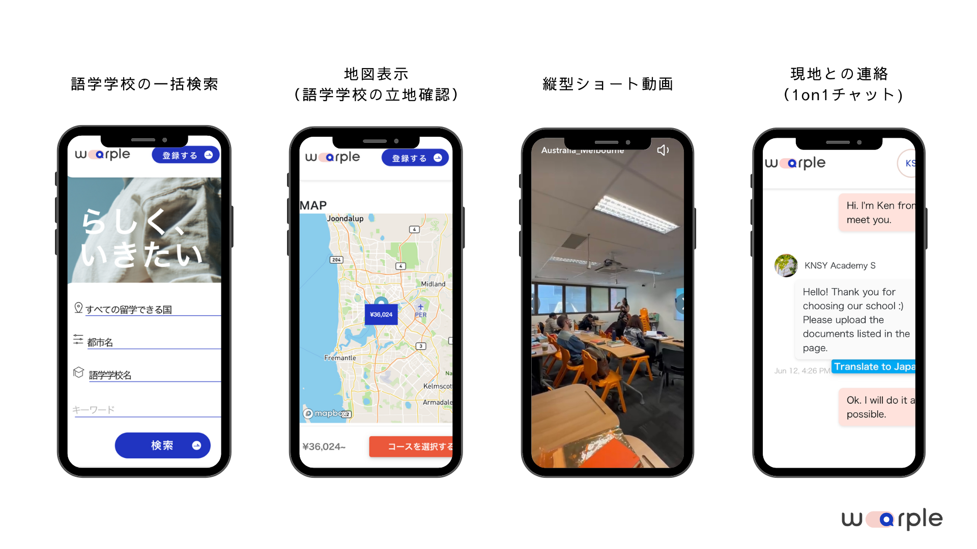 海外旅行のように気軽に留学を手配できる『warple』サービス概要