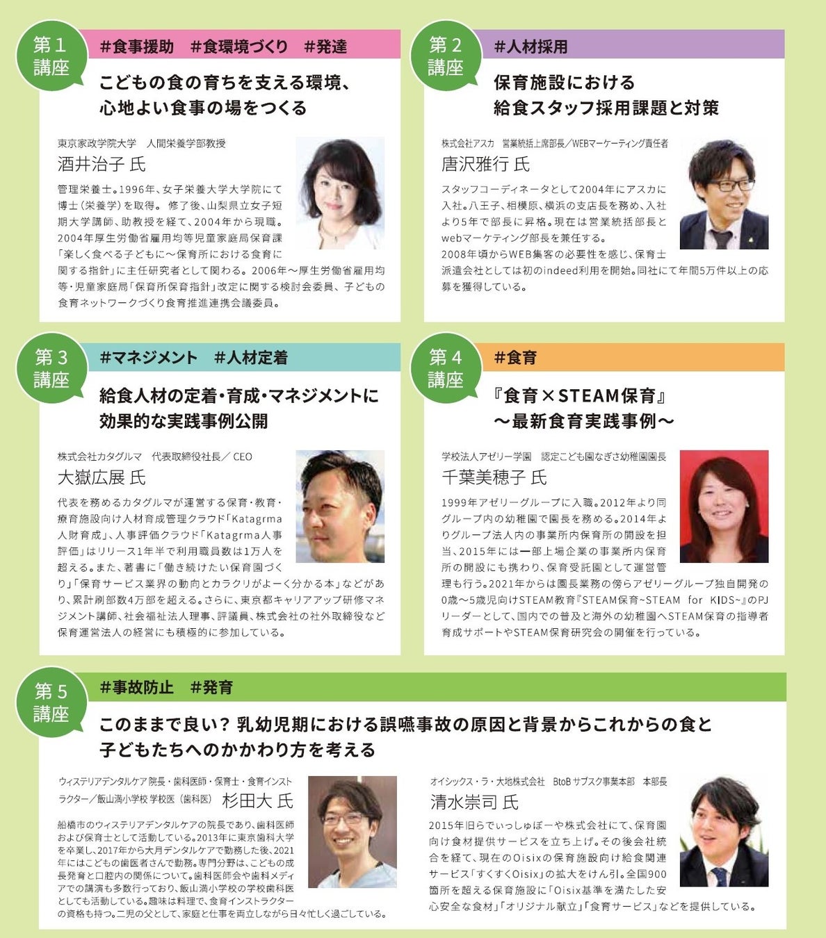 子どもの成長を支える保育給食は近年発育・食育に注目が集まる一方で、誤嚥事故や栄養士・調理員の定着課題、食材費高騰など様々な課題があります。本セミナーでは、子どもの発育や咀嚼を研究されてきた先生方、先進的な食育に取り組む園長先生、人材マネジメントのプロが集まり、保育経営の未来を「給食」の観点で語ります。