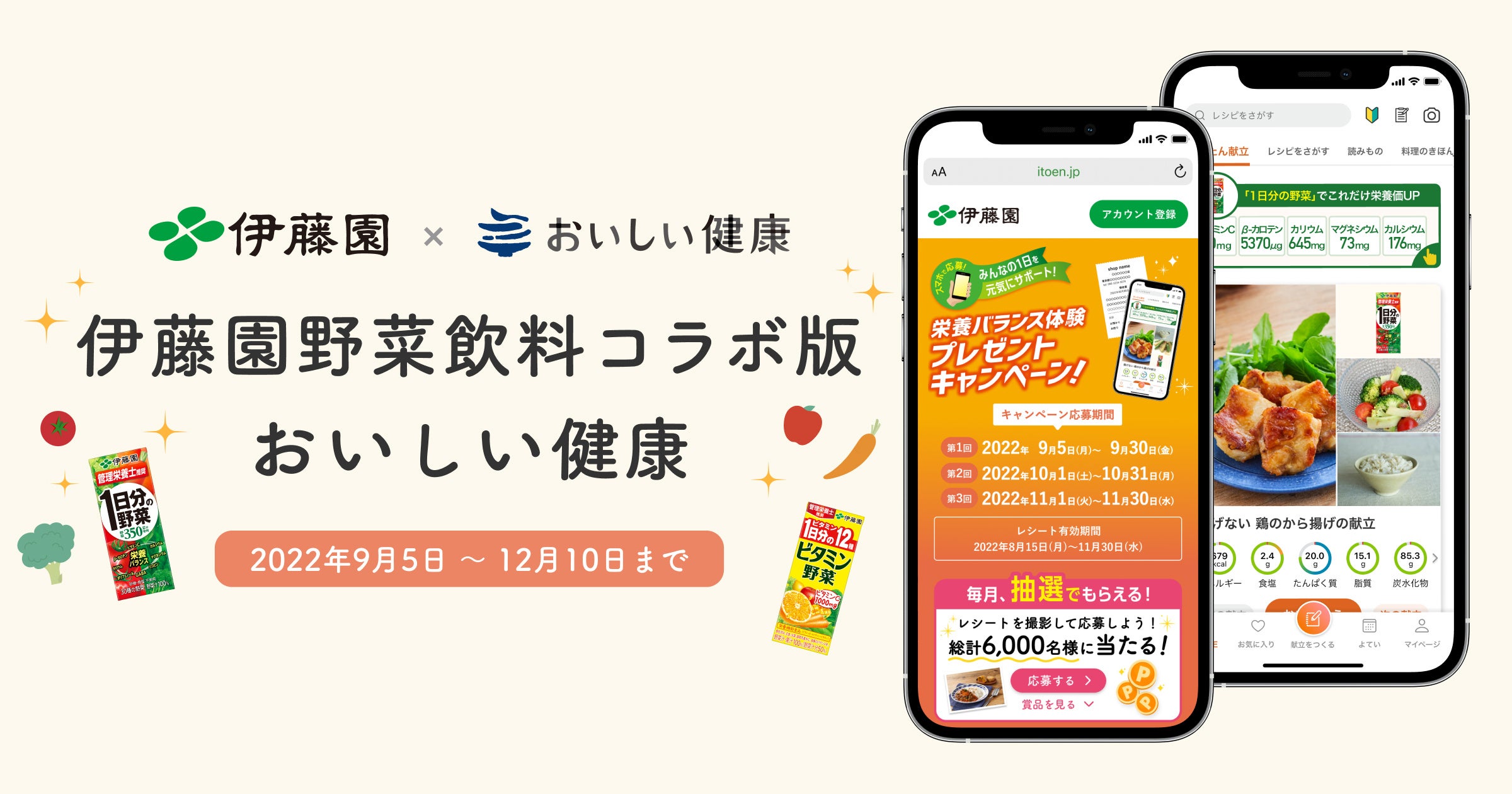 AIによる・献立・栄養管理アプリ「おいしい健康」×伊藤園「野菜飲料シリーズ」自分の栄養バランスに合った食事体験施策をスタート