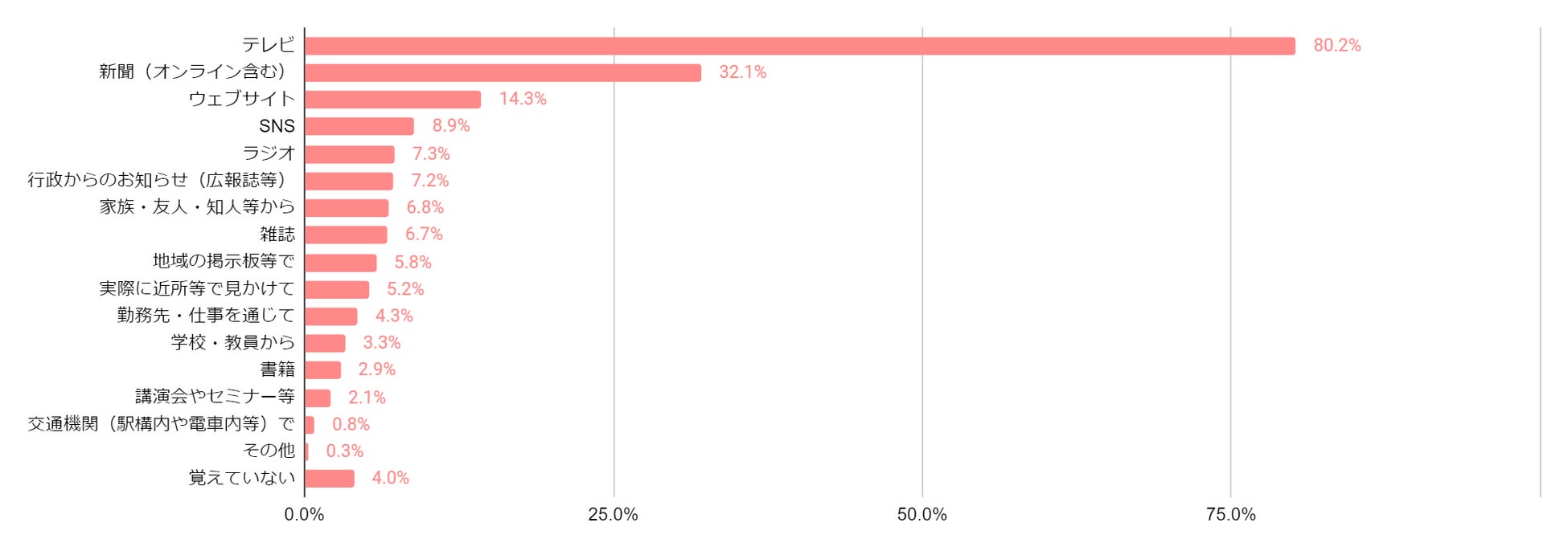 こども食堂の認知経路は「テレビ」が最も高く80.2%で「新聞(オンライン含む)」32.1%、「ウェブサイト」14.3%が続く