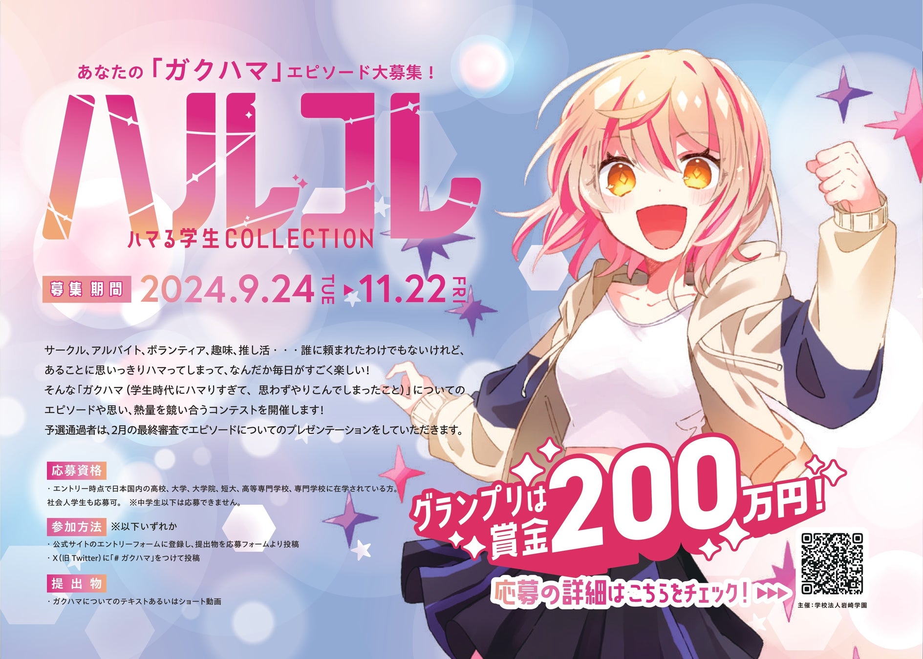 学校法人岩崎学園(横浜市神奈川区)は、「学生時代にハマりすぎて、思わずやりこんでしまったこと ー ガクハマ」を応援するコンテスト「ハマる学生COLLECTION―ハルコレ―」を初開催します。