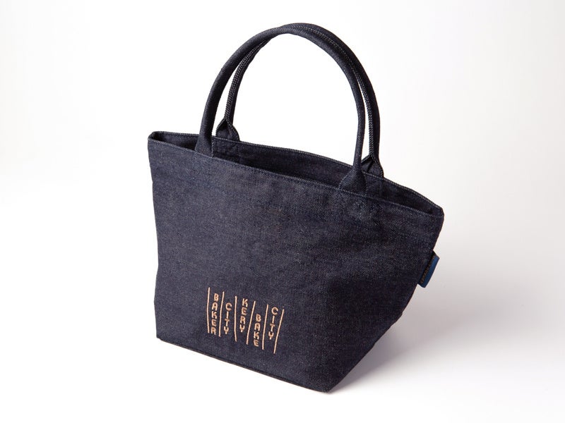 新色デニムトートバッグにプレッツェルクロワッサンやチョコレートチャンククッキーなどを詰め込みました。