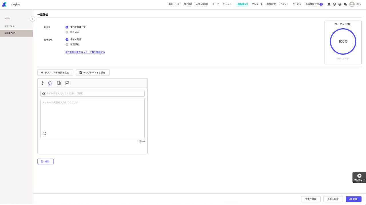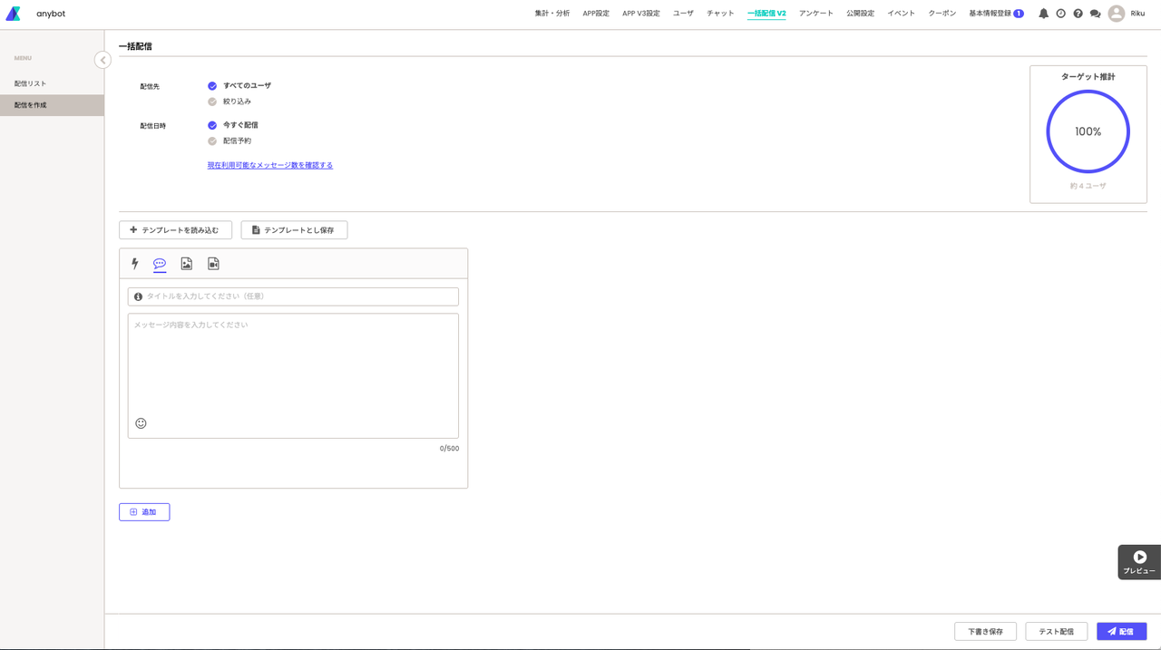 リニューアル後の一括配信画面(v2ご利用の場合)