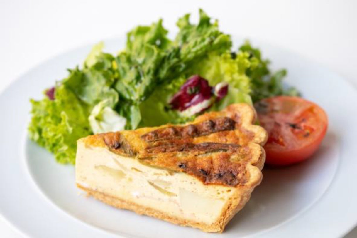 旬の彩り鮮やかなスナップエンドウと新玉ねぎの甘さが詰まったキッシュ。フワッとした卵とサクサクとした生地の食感とご一緒にお楽しみください。