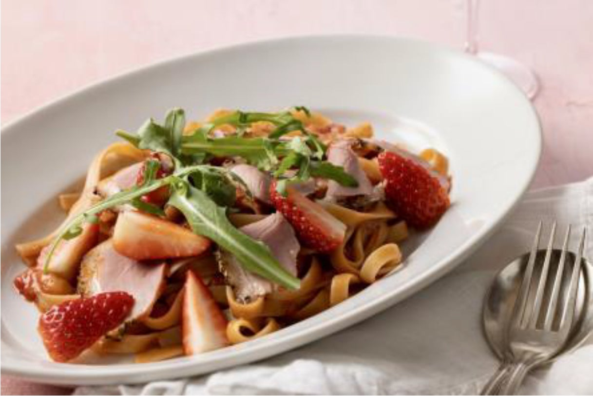 苺とスモークした合鴨のフィットチーネ