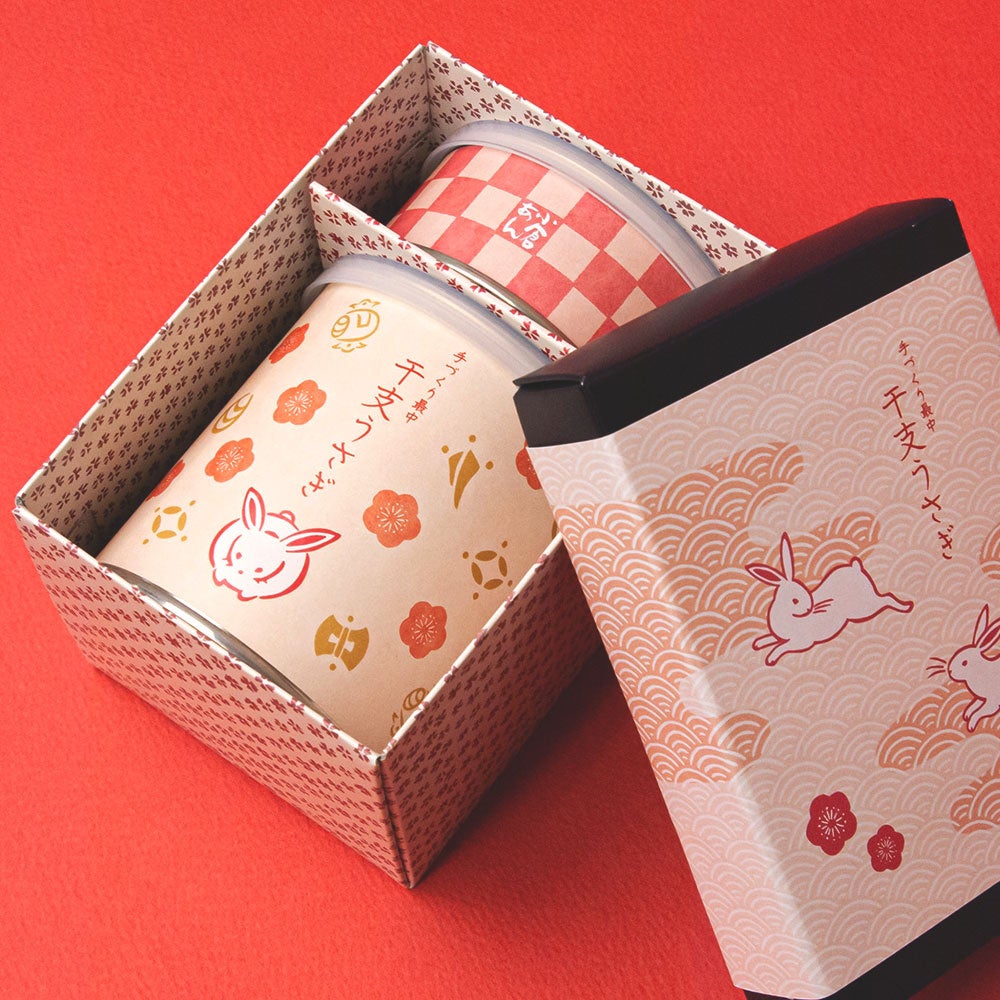 掛紙から缶の巻紙まですべて、幸を呼ぶうさぎづくし。お日持ちも1年と長く、年末年始のご挨拶や、ご家族そろってのおやつ時間にぴったり。アレルギー特定原材料等28品目を使用しておりませんので、帰省されたお子様・お孫様へのおもてなしにもおすすめでございます。