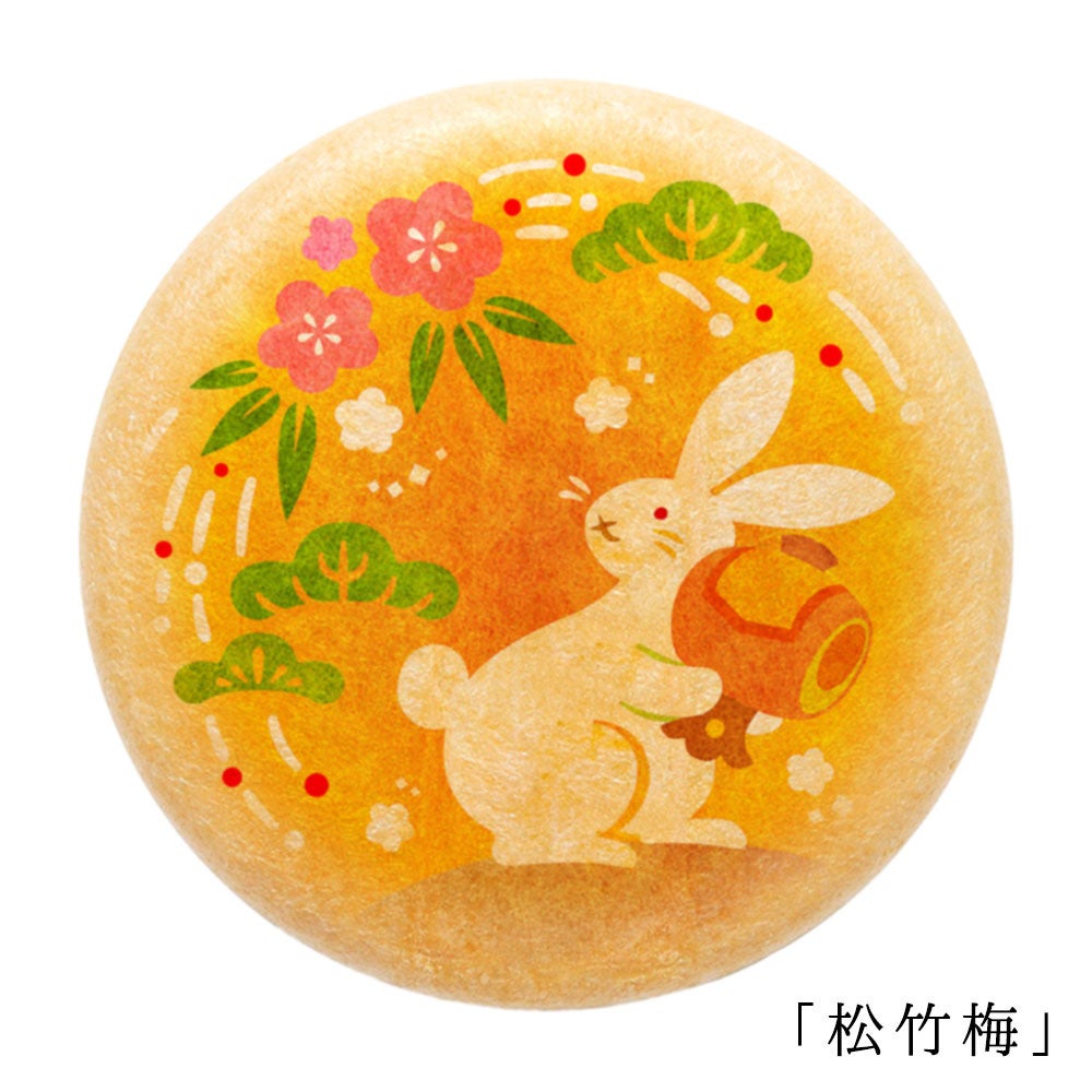 本年の「中秋の名月」期間には「お月見バージョン」で発売し、予定数を半日で完売いたしました、プリントデザインのお手づくり最中シリーズ。このたびは装いも新たに、新年をお祝いする晴れやかなうさぎの意匠で期間限定にて数量をご用意して販売中です。
