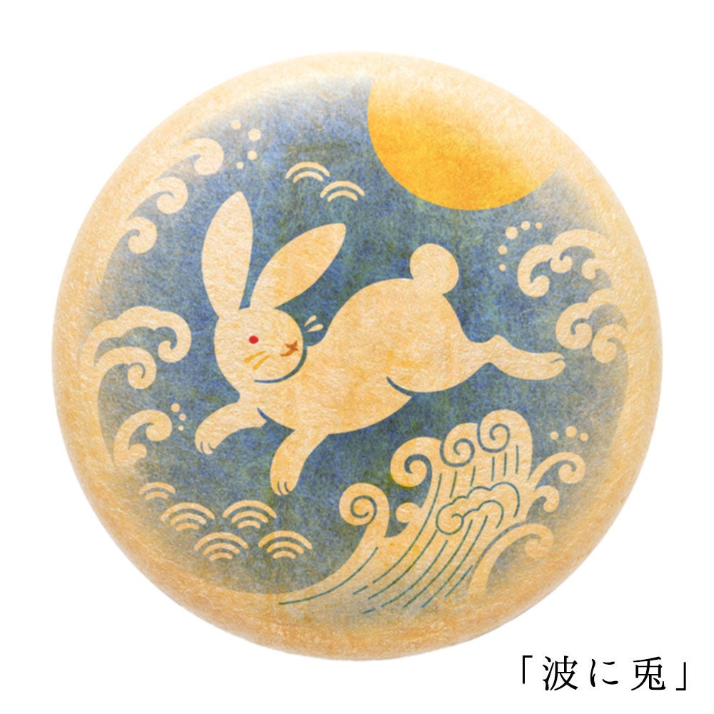 月の波間に跳ねあそぶうさぎのすがたは、能の演目が由来と言われる縁起の良い意匠。寄せて返す波は未来永劫つづく平和や幸せの象徴として、吉祥の文様として親しまれます。