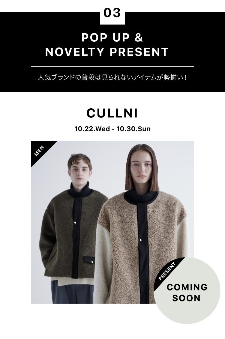 メンズの人気ブランドCULLNI(クルニ)のPOP UP SHOPを開催!さらに期間中にお買い上げいただいたお客様には特別なプレゼントも!
