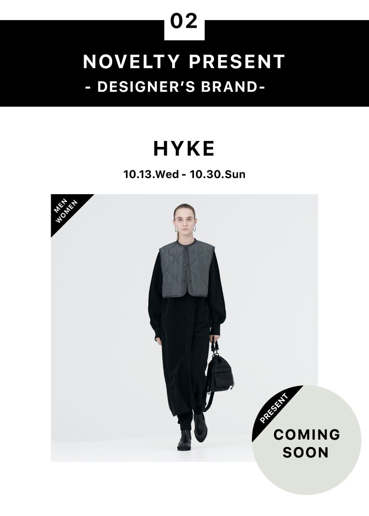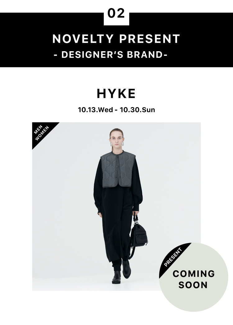 大人気ブランドHYKE(ハイク)のアウターを期間中にお買い上げいただいたお客様には、HYKE(ハイク)の専用ガーメントケースをプレゼントいたします!