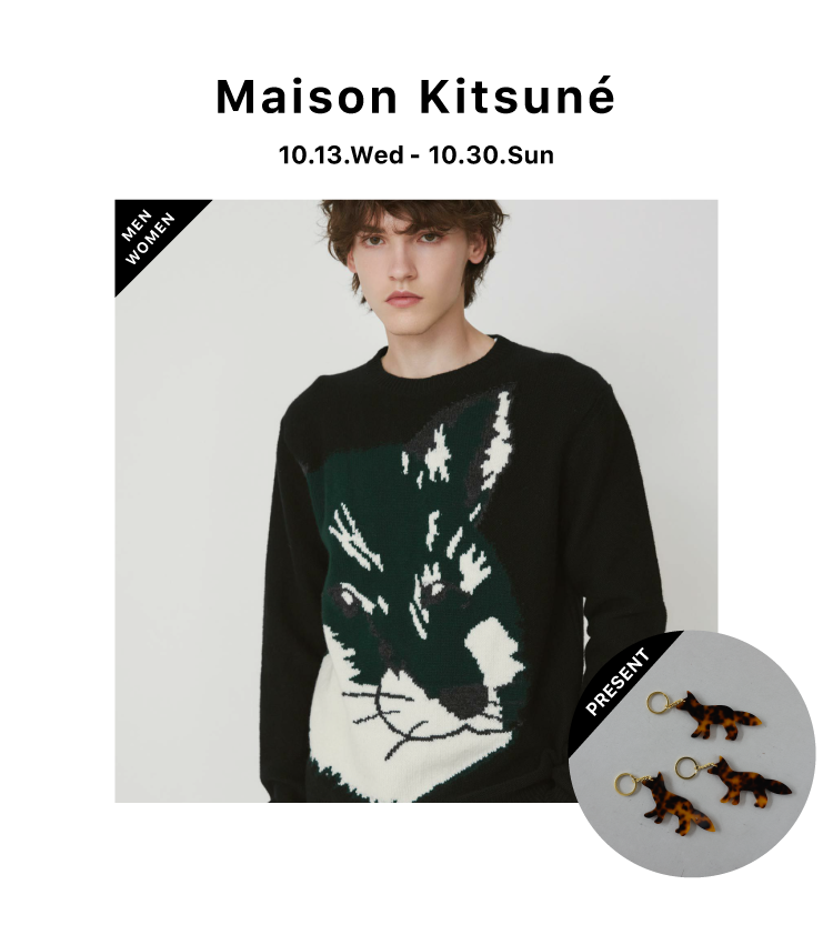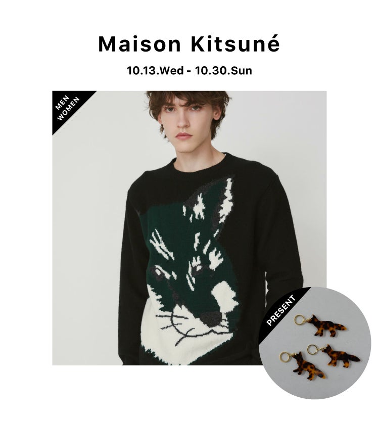 ニセックスブランドとして人気を博しているMaison Kitsune(メゾンキツネ)のアイテムを20,000円以上お買い上げの方に限定キーホルダーをプレゼント