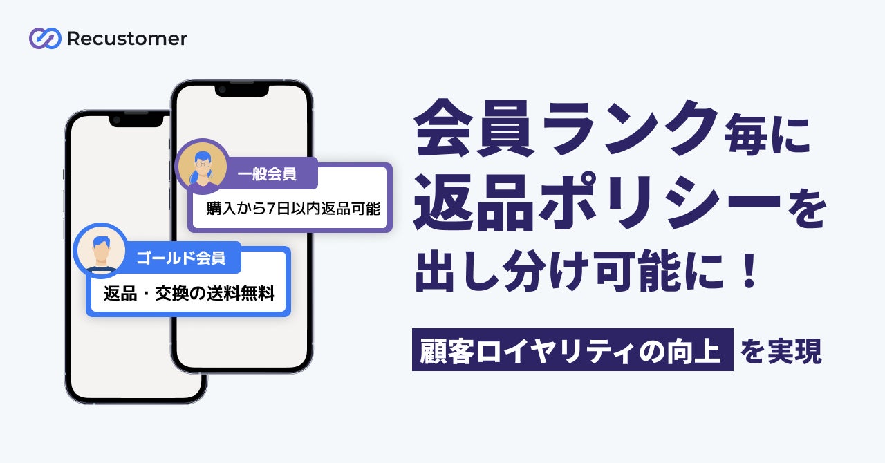購入体験プラットフォーム「Recustomer(リカスタマー)」を運営するRecustomer株式会社(本社:東京都千代田区、代表取締役:柴田 康弘、辻野 翔大)は、2024年7月2日より、会員ランク毎に返品ポリシーを出し分ける機能を公開いたしました。これにより、ロイヤリティプログラムの特典として「返品送料無料のサービス」の提供が可能となりました。