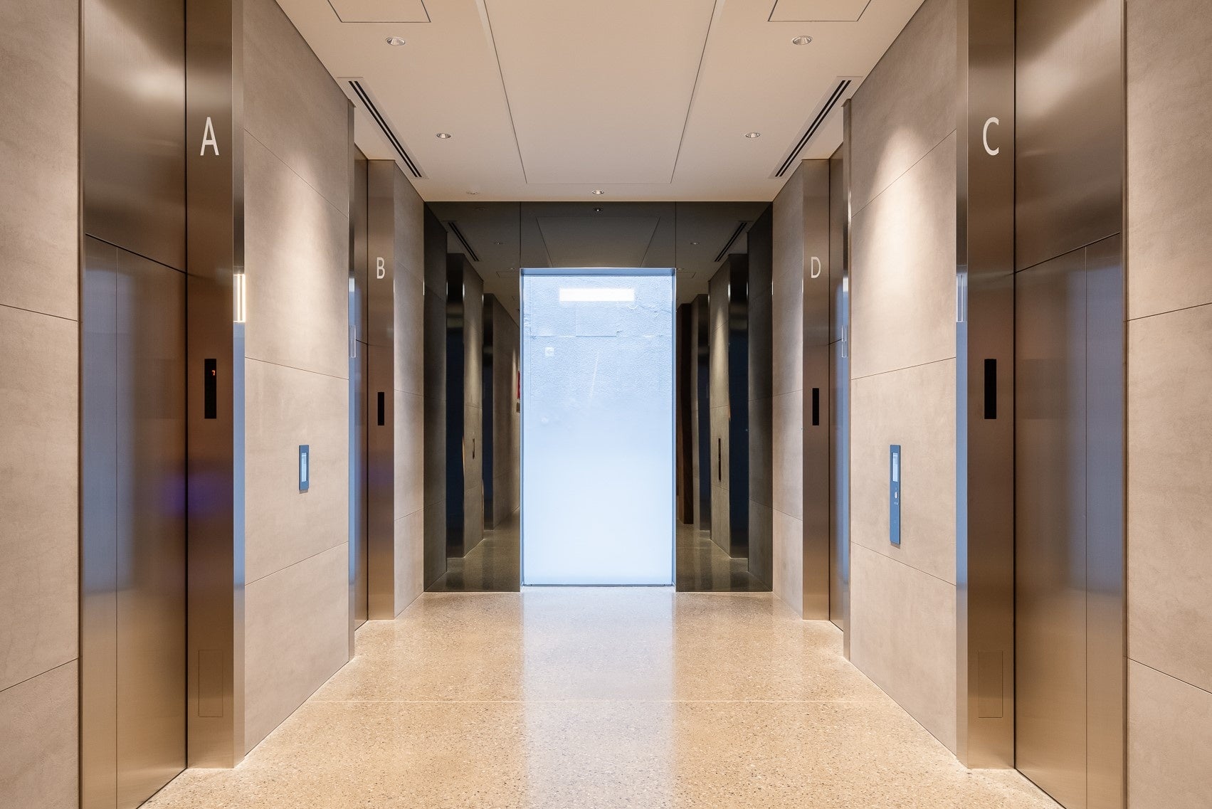 森永製菓 新オフィスビルに朝のエレベータ待ち渋滞を緩和するシステムを納入