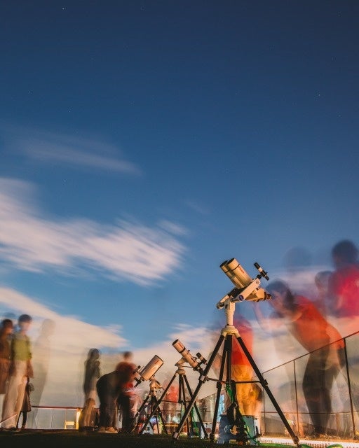 本施設では渋谷でもっとも宙に近い天体観測イベント「ROOFTOP 天体観測」をマンスリーで開催。総合光学機器メーカー株式会社ビクセン協力のもと、屋上展望空間「SKY STAGE」に数台の天体望遠鏡を設置し、足元に広がる大都会東京の景色と、神秘に満ちた宙で起こる天文現象を静かでゆったりとした時間とともにお届けします。