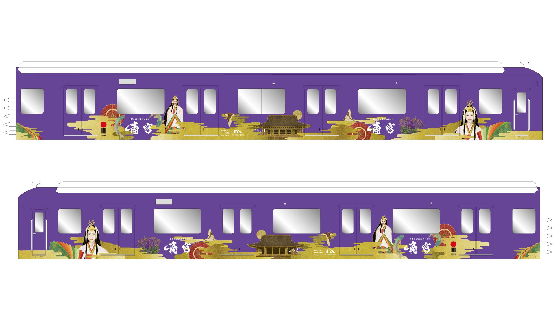 この企画は、一般社団法人明和観光商社によるアフターコロナにおける斎宮・明和町への観光誘客を目指す「神宮ゲートウェイ」プロジェクトの一環で、近畿日本鉄道株式会社の協力を得て、1300年の歴史を紡ぐ斎宮・斎王をイメージしたデザインの特別車両の運行を実施するものです。神に仕えた皇女「斎王」役には、タレントの壇蜜さんを起用しました。