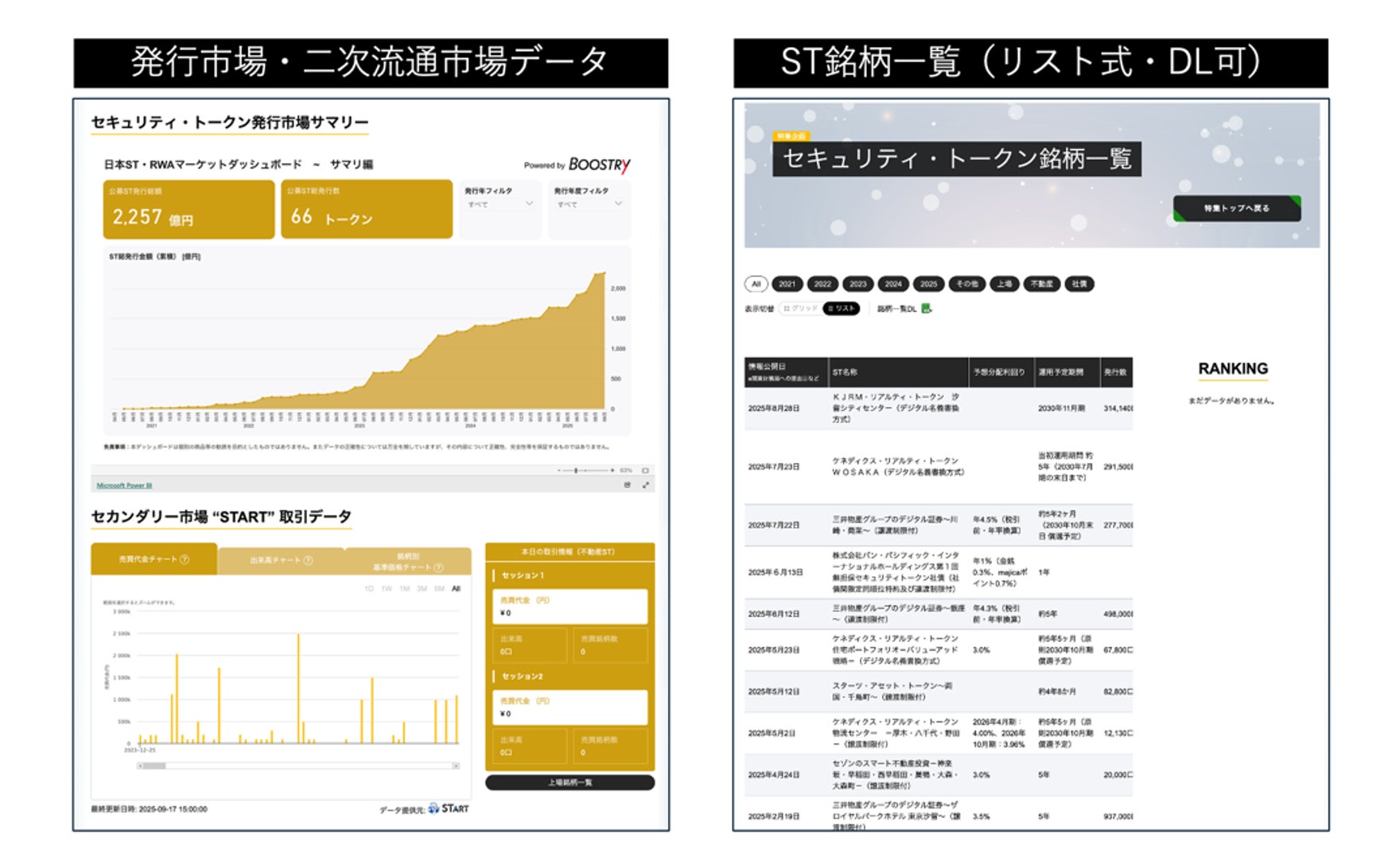 第三弾からは、これまで大阪デジタルエクスチェンジ株式会社運営の「START」より国内唯一のメディアとして取得・掲載していた「二次流通市場データ」に加え、株式会社BOOSTRYの提供により、「発行市場のデータ」の掲載も始めております。