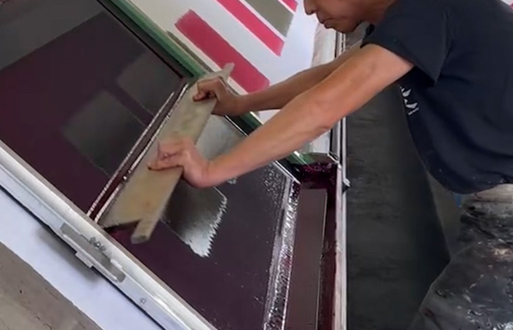 京都で染める。手捺染( てなせん)、別名「京型友禅」