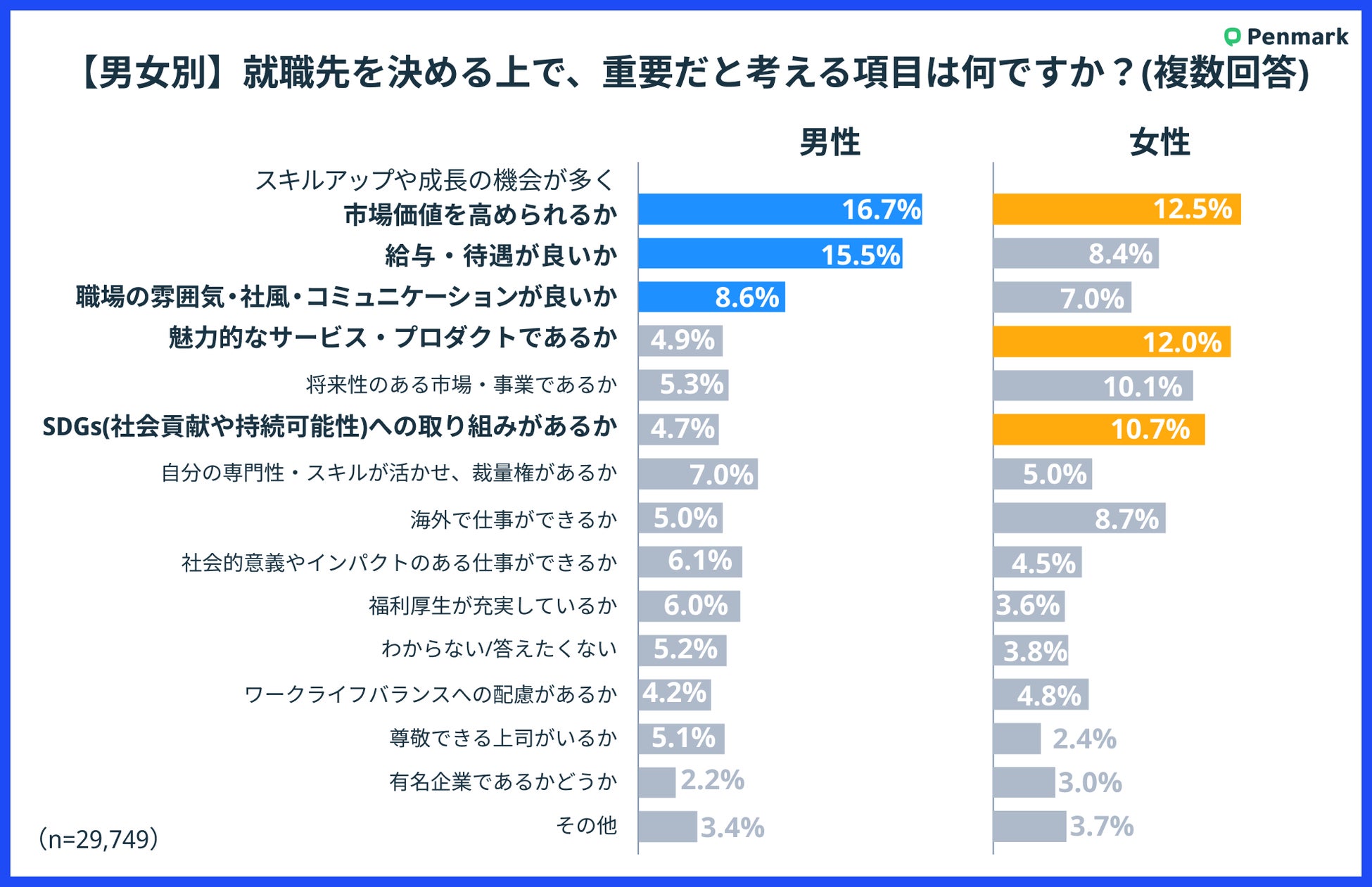 ②Z世代の就職観、「市場価値を高められるか」が最重要。重視する点の男女差が明らかに