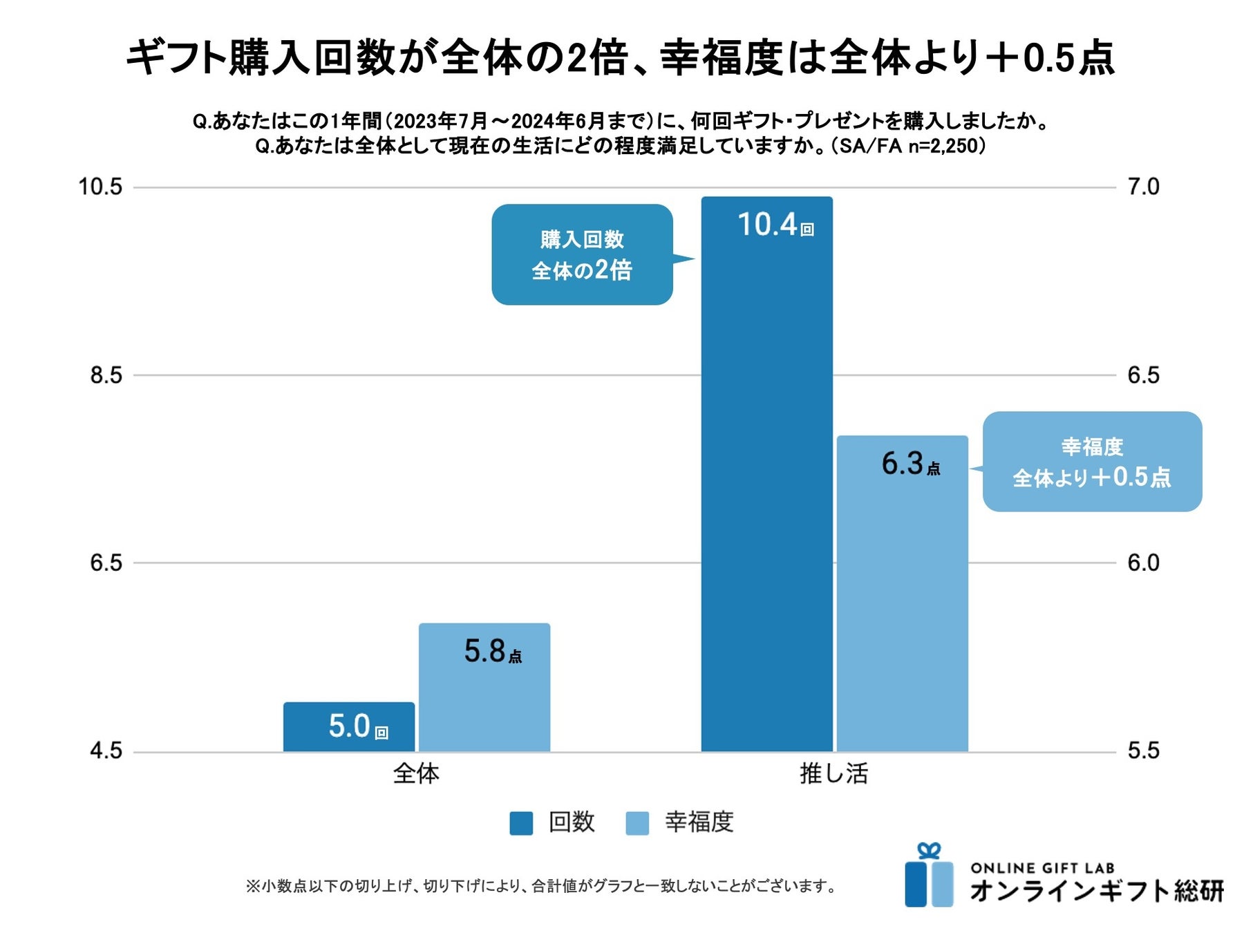 ②推し活ギフトを購入している人は幸福度(※)が全体平均よりも0.5ポイント高い