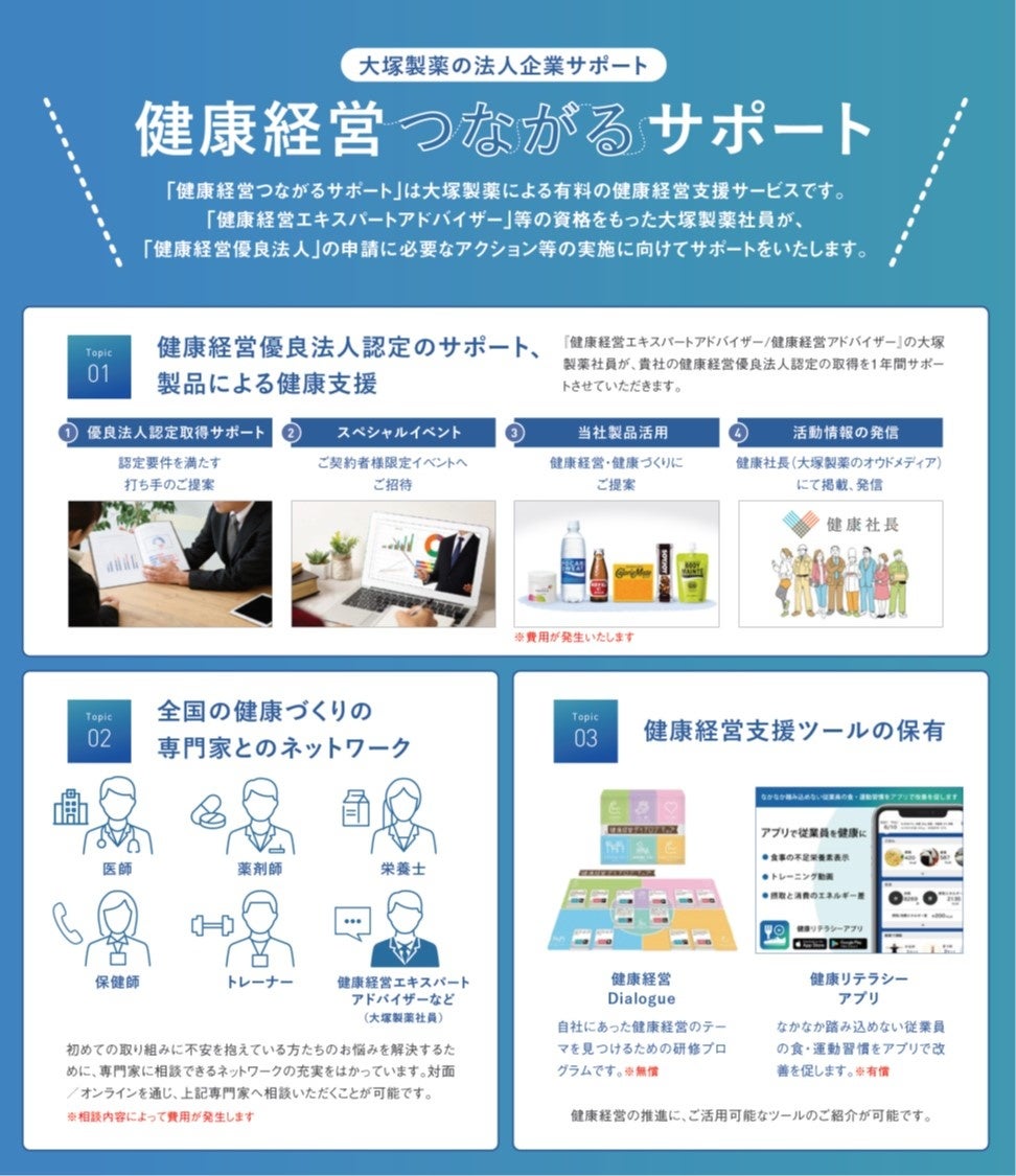 大塚製薬 中小企業の健康課題解決を支援する【健康経営つながるサポート】の本格運用開始