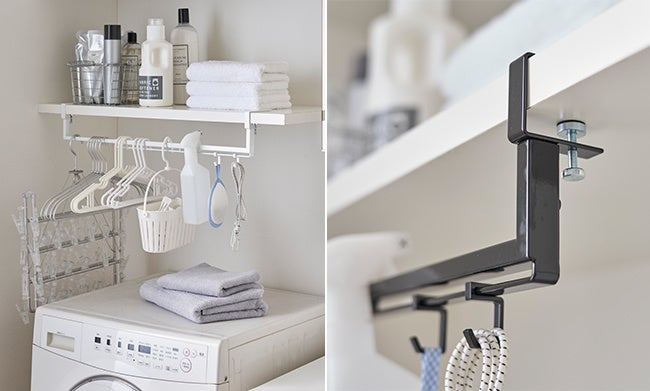 マグボトルやコップの収納に便利なラック、ランドリールームの棚に取り付けることができる収納ハンガーが発売中です。