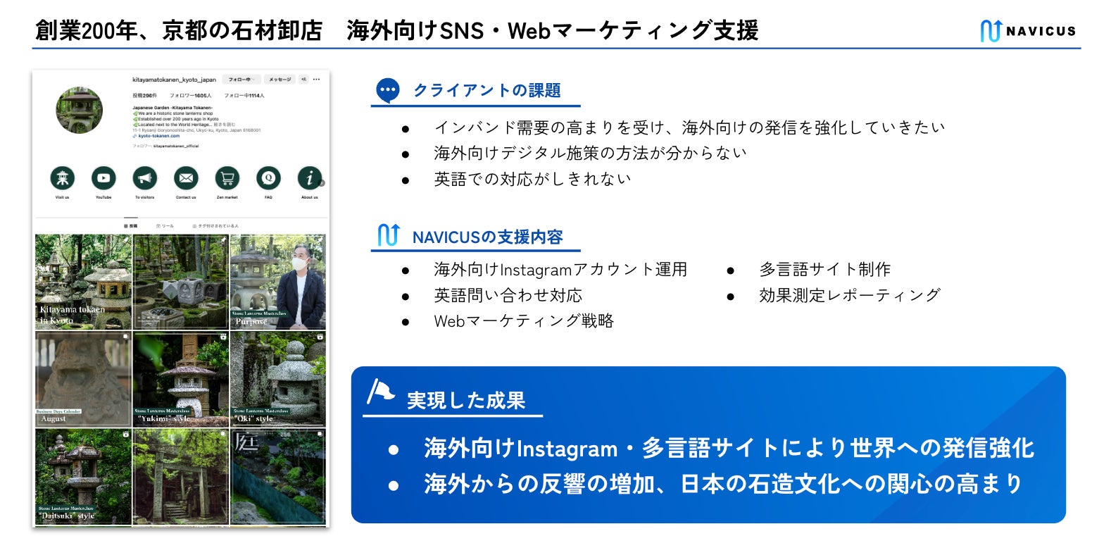 京都の老舗石材店の海外向けSNS展開をNAVICUSが支援 〜インバウンド増加に応え石造文化の魅力を世界へ〜
