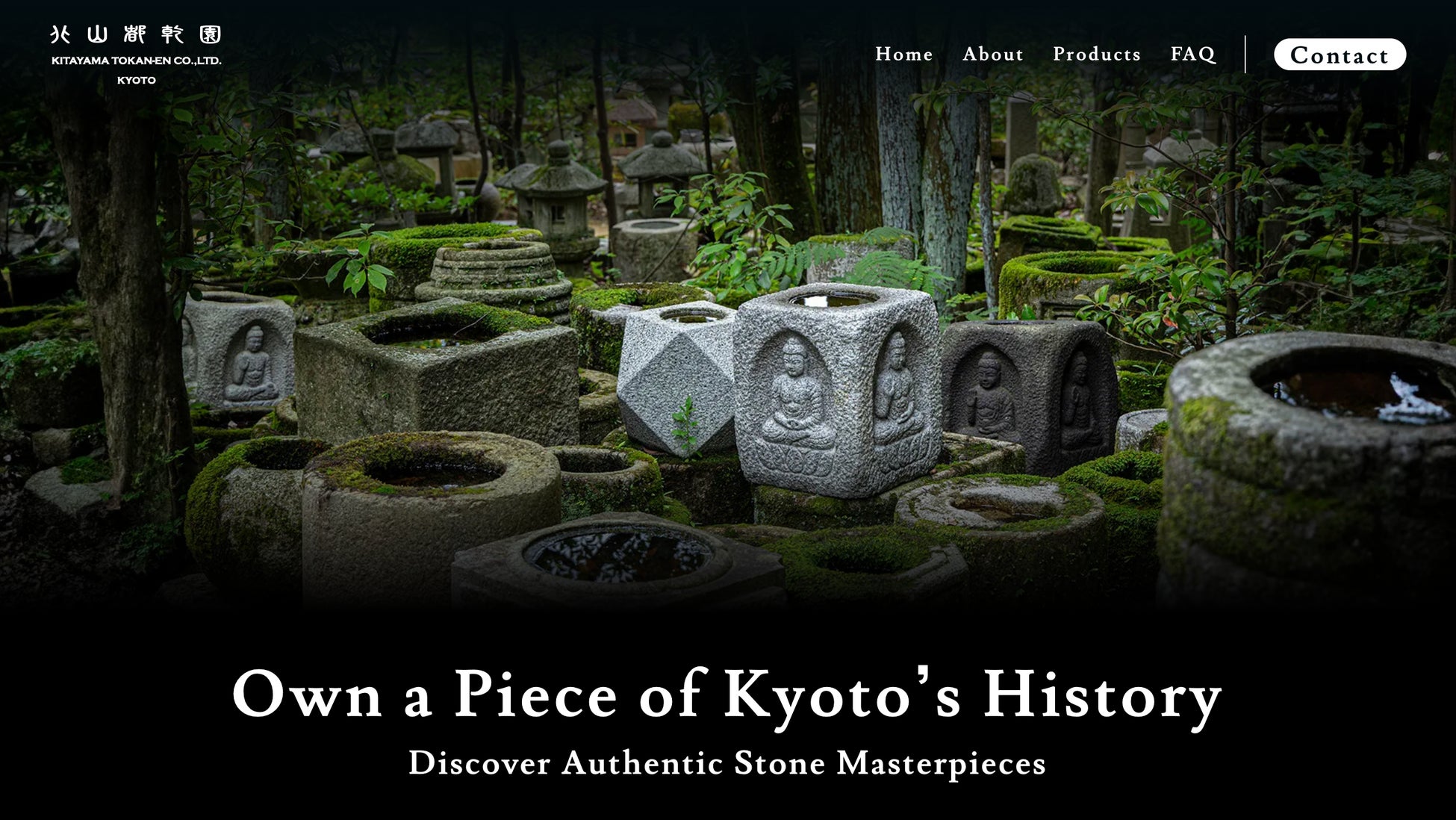 株式会社北山都乾園は、創業文政元年(1818年)の歴史を持つ老舗石材卸店です。古都京都を拠点に、石燈籠や手水鉢など、日本随一の量と質を誇る石造品を提供しています。古くからの造園や建築業界とのつながりを大切にし、歴史ある京町家から価値のある石造品を譲り受け、手入れをして新たな日本庭園へと届けています。長年培ってきた知識と経験をもとに、高品質な石造品を提供しており、国内はもちろん海外の顧客からも高い評価を受けています。