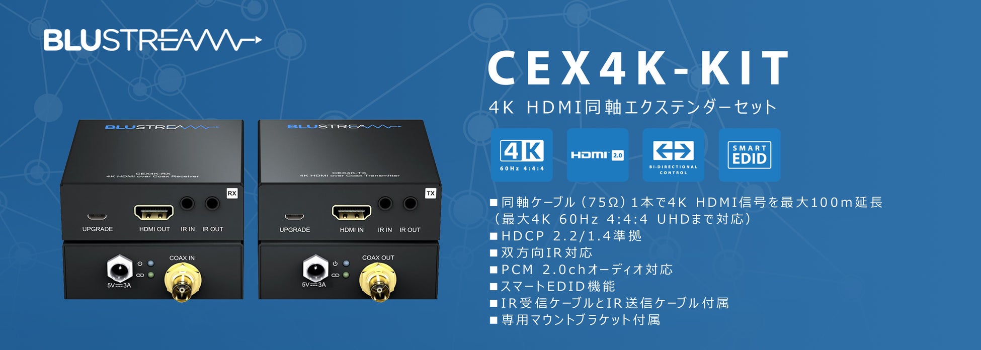 4K 60Hz 4:4:4のHDMI信号を同軸ケーブルで最大100m延長 [型番:CEX4K-KIT]