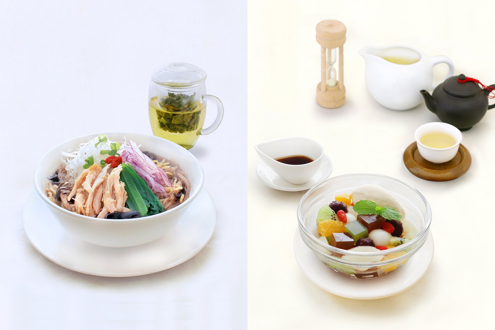 コシのある生麺に蒸し鶏と野菜をのせ、黒酢をたっぷりきかせた醤油ベースの黒酢麺。ビタミンEを豊富に含む、モロッコのアルガンオイルの風味もお楽しみください。ヘルシーでクセになる一品です。