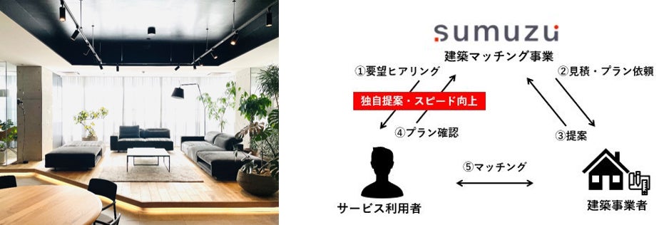 当社は、東京の城南エリア*1を中心に、注文住宅用の土地の企画・販売を行っております。不動産事業者でありながらも、土地取得の段階から建築プランの検討、最適な建築事業者提案、ライフスタイルやリセールバリュー*2を意識したデザイン提案を行うことで高いお客様満足度を実現してきました。また、建築士を中心とする社内の建築サポート専門部門が主体となってsumuzu Matching(注文住宅希望者と建築事業者をマッチングする当社独自のサービス)を運営することで不動産事業者の枠に留まらない提案レベルを実現しています。
