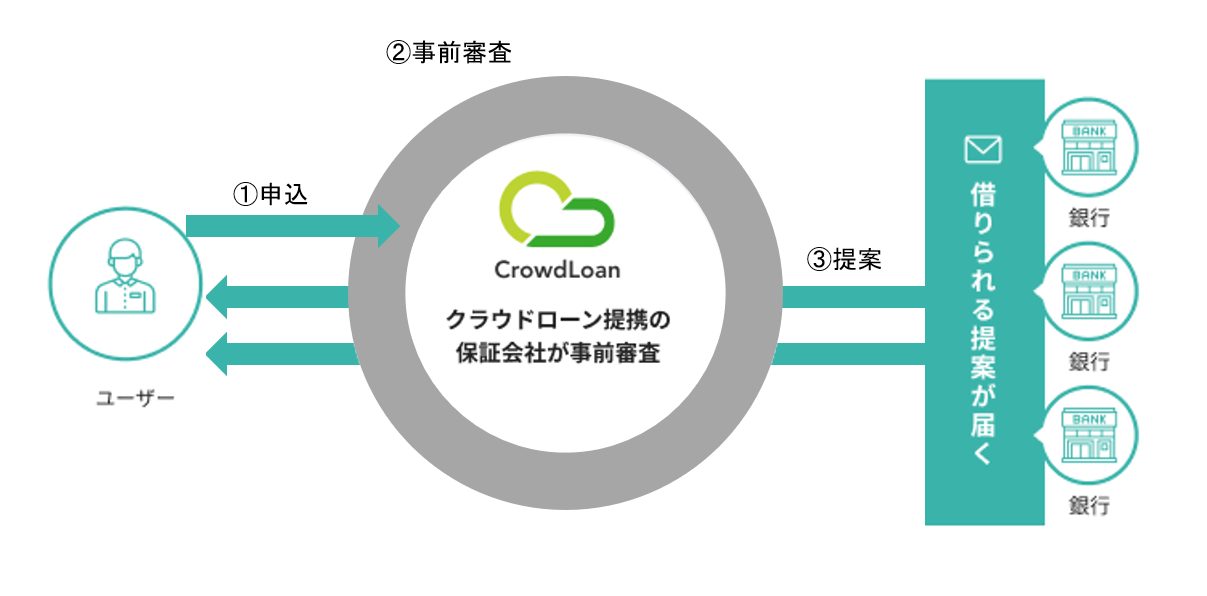 クラウドローンは、貸し手である銀行と借り手である個人を、オンラインでつなぐマッチングプラットフォームです。