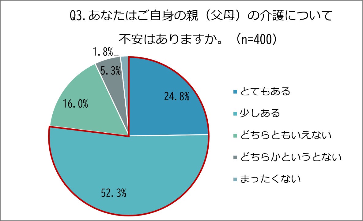 そのような中、介護の問題については、実に77.1%が不安を抱いていることが分かりました。