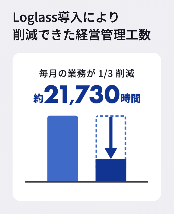 ▼Customer Success:Loglassで削減できた経営管理工数 約21,730時間