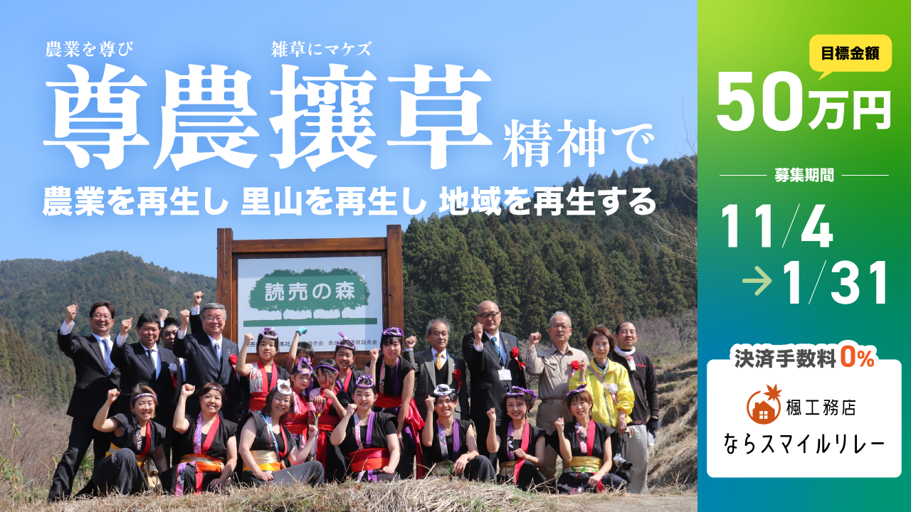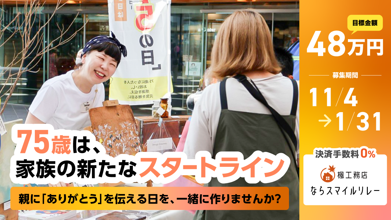 奈良で活動するNPOの想いや挑戦を“笑顔のリレー”としてつなぎ、地域をより良くする取り組みを広げていくことを目的としたクラウドファンディングです。本プログラムでは、寄付金の決済手数料を楓工務店が全額負担することで、寄付者の想いを100%NPOに届けることができます。地域を支える活動を応援したい方々が、安心して寄付に参加できる仕組みを整えることで、「人と地域を笑顔でつなぐリレー」を目指します。