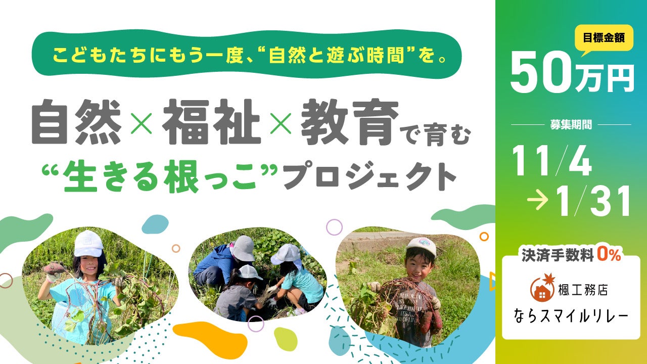 奈良・京都南部を中心に注文住宅事業「楓工務店」や不動産事業「トチナラ」などを展開するアイニコグループ株式会社(本社:奈良県奈良市、代表者:田尻 忠義、以下当社)は、奈良県内で地域課題の解決に取り組む11のNPO団体を支援するクラウドファンディングプログラム「楓工務店 ならスマイルリレー」を本日(11月4日)より開始しました。開催期間は2026年1月31日(金)までです。