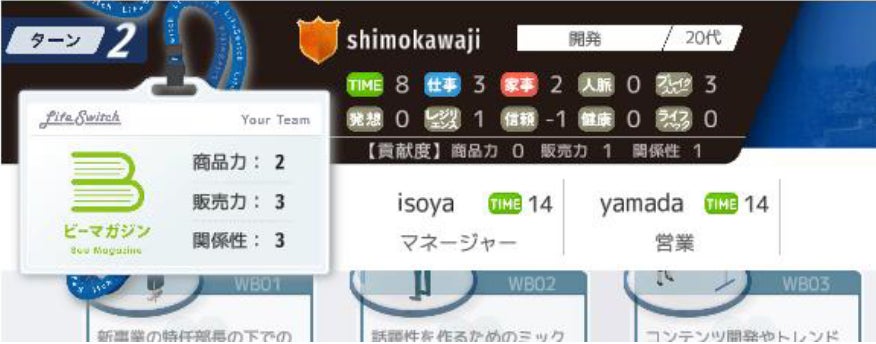 ライフ・スイッチでは、参加者が3~5つの組織(企業)に分かれて最終的な業績で勝敗を競います。