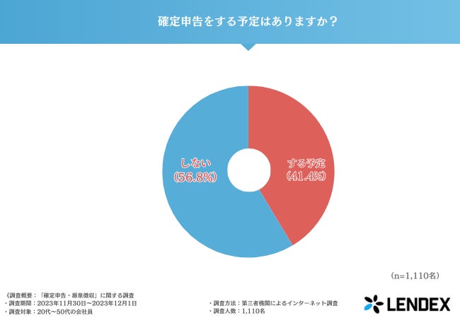 株式会社LENDEX(本社所在地:東京都渋谷区、代表取締役:中村 智)は、20代〜50代の男女を対象に、「年末調整・確定申告」に関する調査を実施しました。