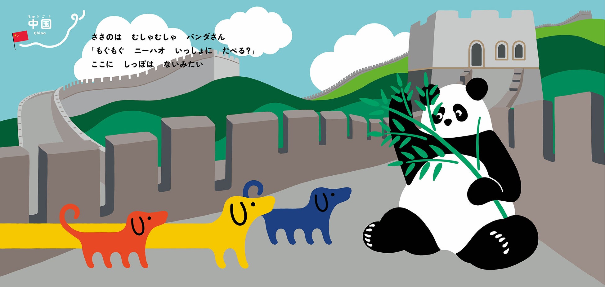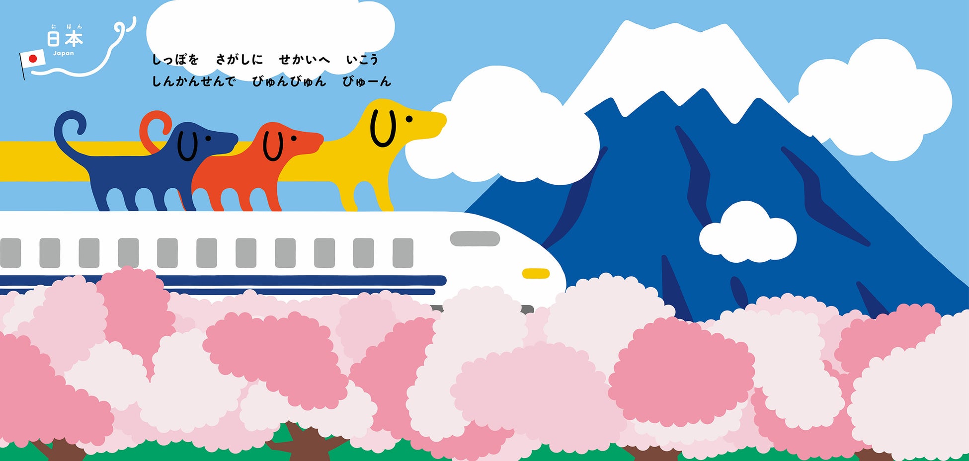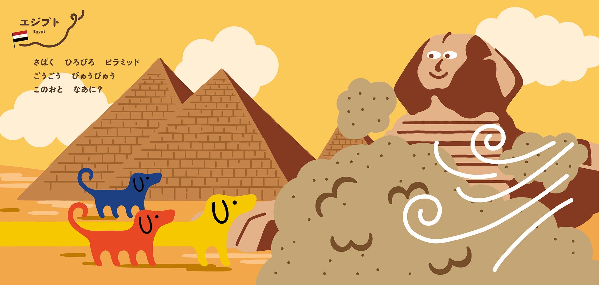 ある日、自分のしっぽを見失ってしまったナガスギルイヌ。じまんのしっぽを見つけるために、友だちのイヌたちと世界の旅へ出発します。さまざまな国を訪れる中、中国ではパンダ、エジプトではスフィンクス、パリではナガスギルネコなど、さまざまな生き物(?)たちと出会います。また、行く先々の風景には、万里の長城や凱旋門など、各国を象徴する建物が描かれていて、まるで世界旅行をしているような気分を味わうことができます。絵本を通して、日本とはちがった文化をもつ国々があることを感じることができます。