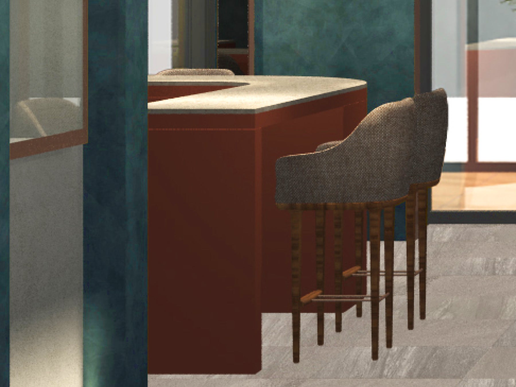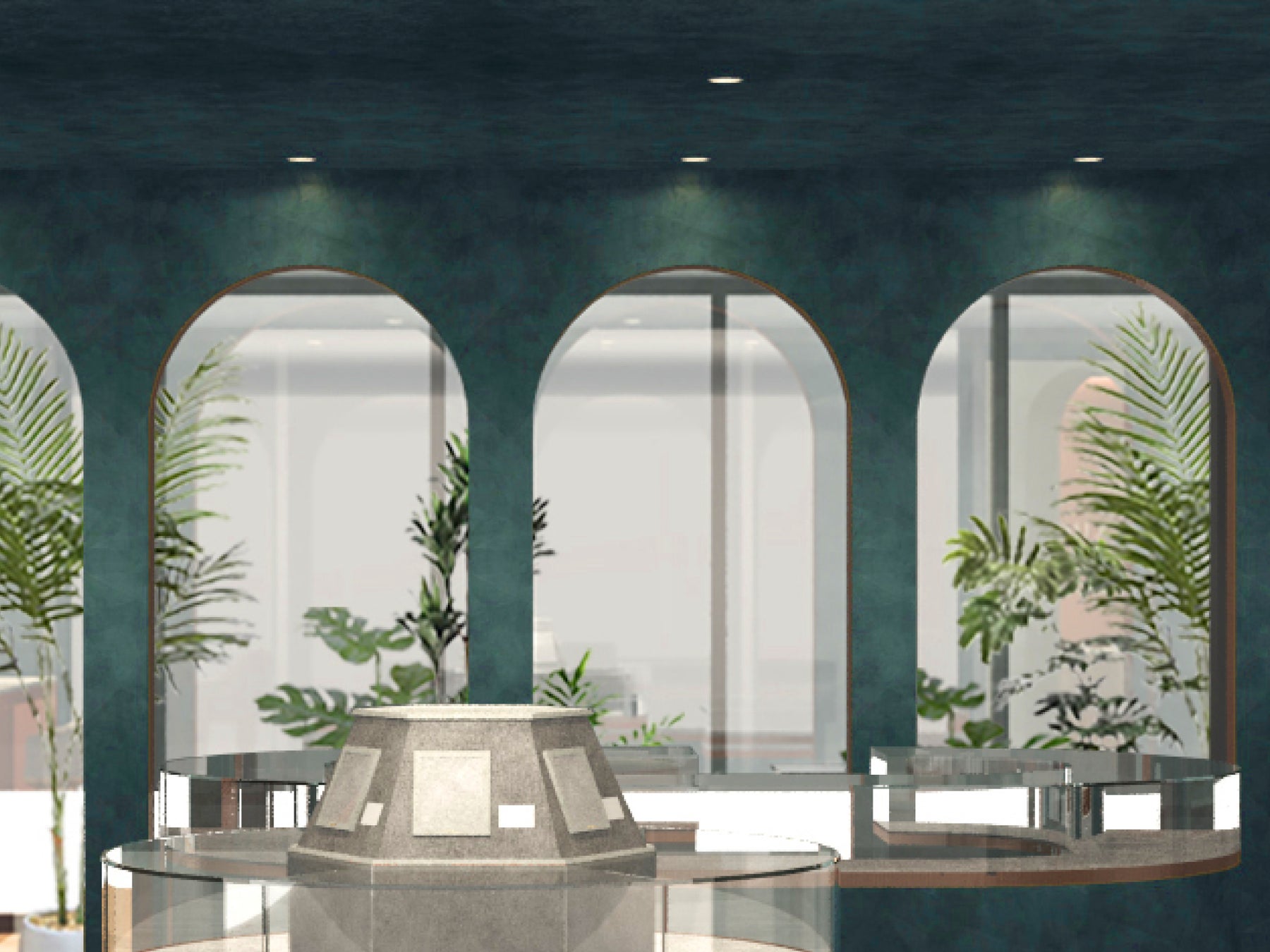 新店舗の店内は、日中は自然光が差し込み、グリーンが茂ります。店内奥には、バーカウンターのような雰囲気のスペースも。ラグジュアリーでありながらリラックスできる空間で、ゆったりとジュエリーをご覧いただけます。