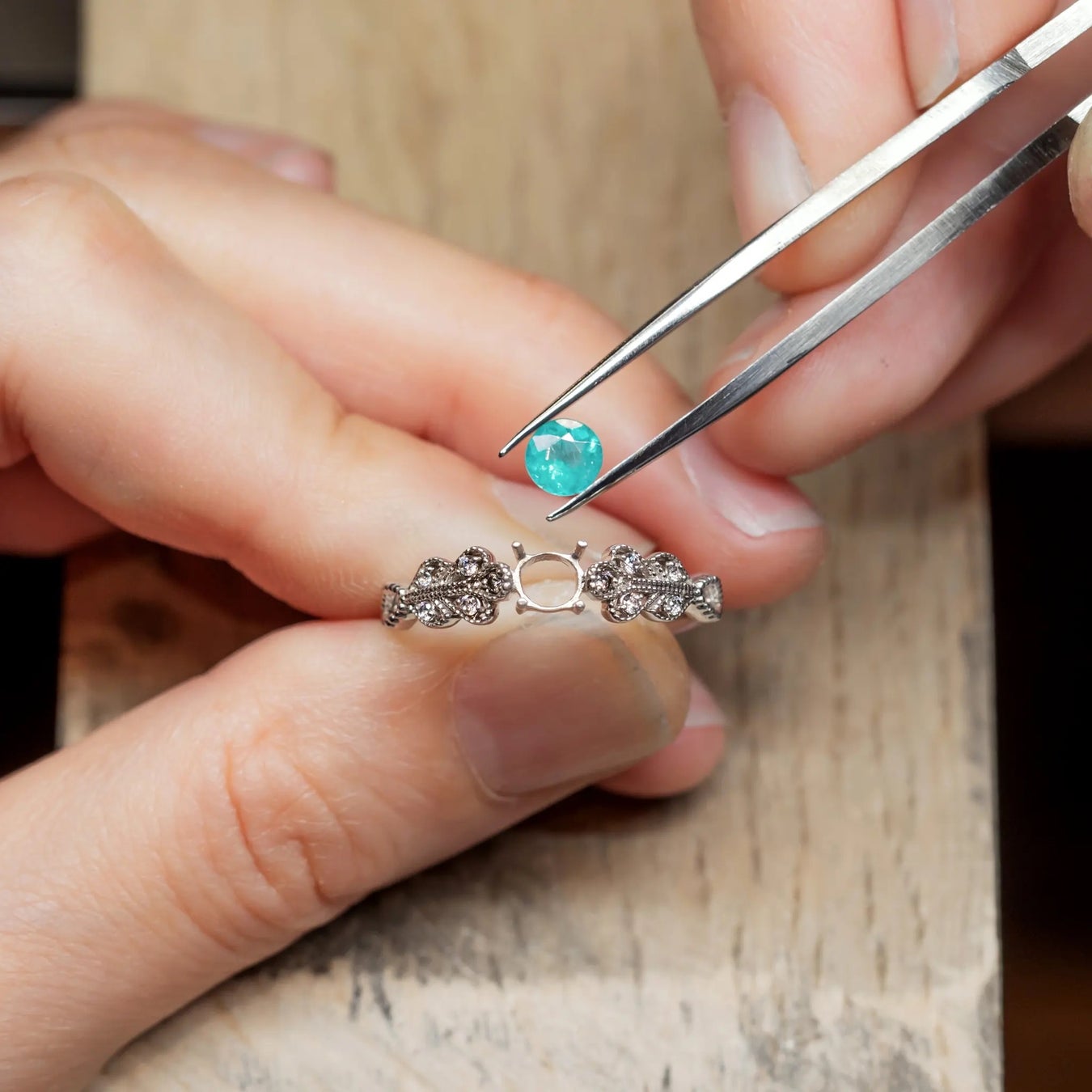 「カスタムメイド」は、1点物の宝石と、お好きなデザインを組み合わせて、世界にひとつのジュエリーを作ることのできるサービスです。
