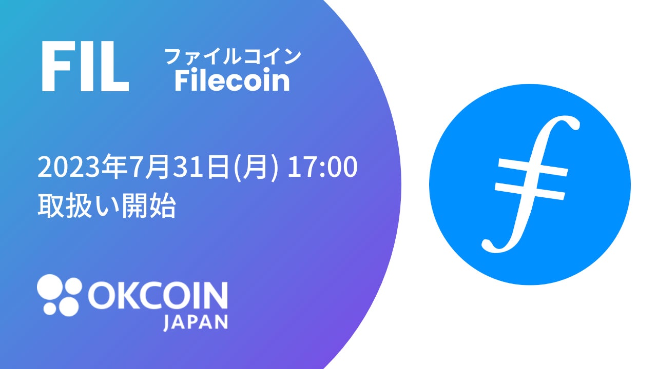 当社は、OKCoinJapan(暗号資産取引所)にて、『ファイルコイン(FIL)』を、2023年7月31日(月)に取り扱い開始することをお知らせいたします。これにより、OKCoinJapanは、27種類の暗号資産を取り扱うこととなります。