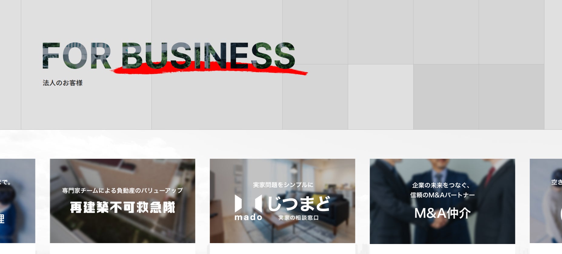 また、法人のお客様向けページでは、資産・不動産・暮らしに関わる課題解決やサービス価値の共創を目的として、従来設けていた業務提携に関するご相談・ご提案ページについても、内容および導線を見直しリニューアルいたしました。