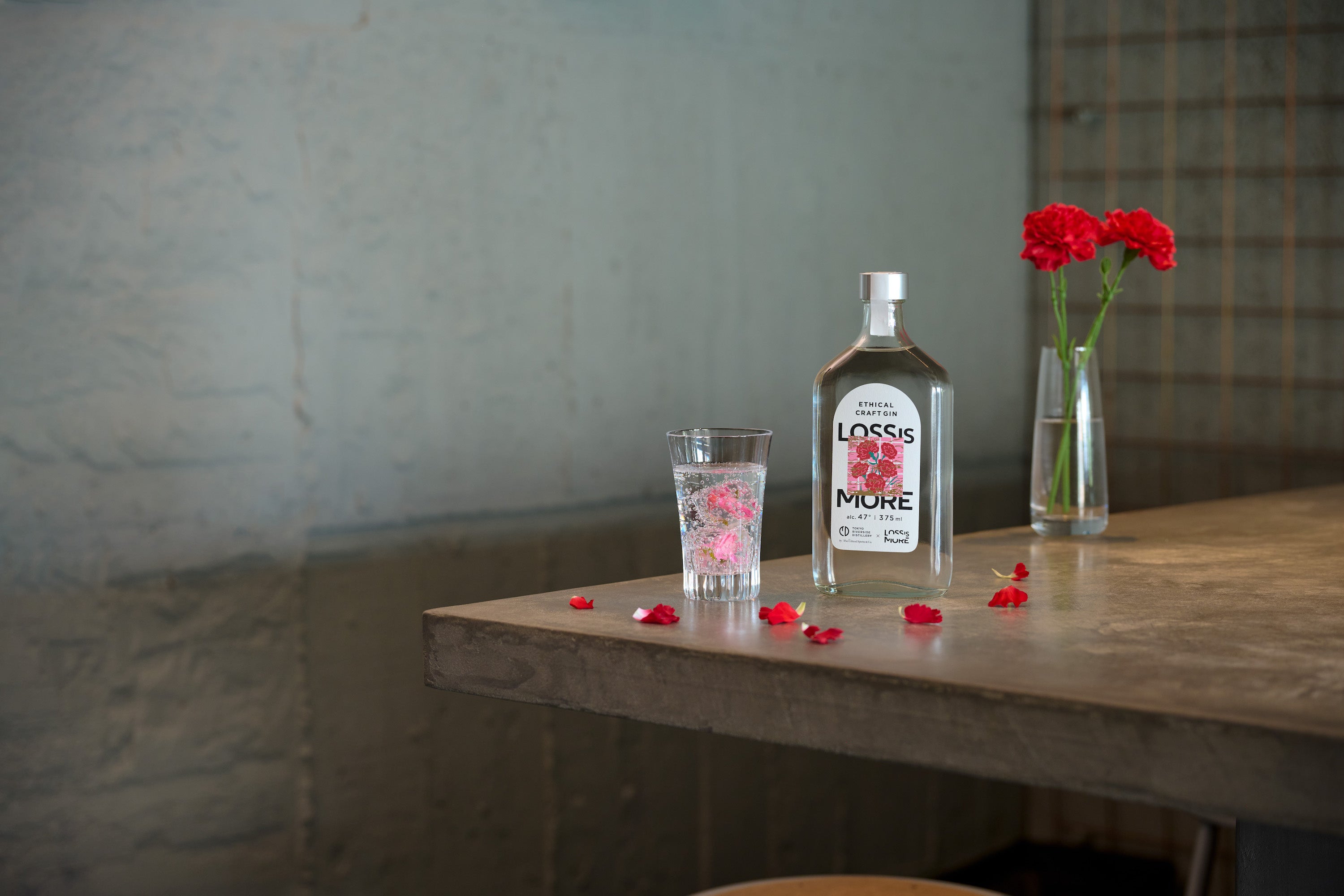 「母の日」というシーズンが過ぎ廃棄される運命にあった「カーネーション」や花びらがたった1枚変色していたり、サイズが小さかったりするなどで規格外となってしまっていたバラやユリなどの花々が持つ豊かな香りにスポットライトを当て、「LOSS IS MORE」の食のクリエイティブディレクター井上豪希氏のプロデュースと「エシカル・スピリッツ」の蒸留家山口歩夢の蒸留により、「LOSS IS MORE GIN」が誕生しました。