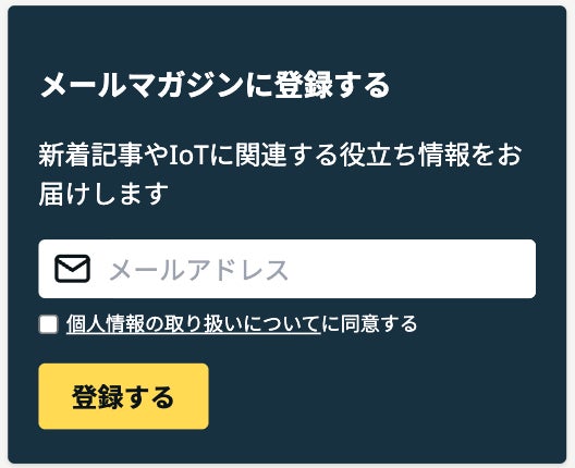 「IoTBiz」のWEBサイトにアクセスの上、上記画像のメールマガジン登録バナーからぜひご登録ください。