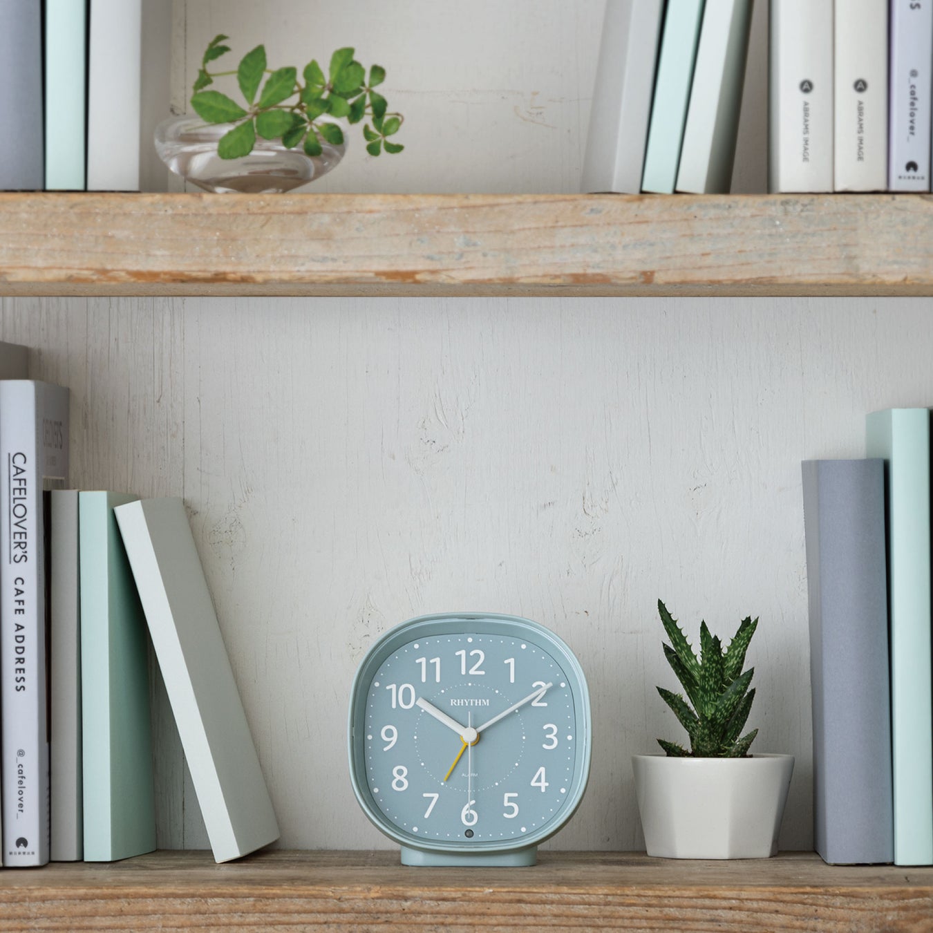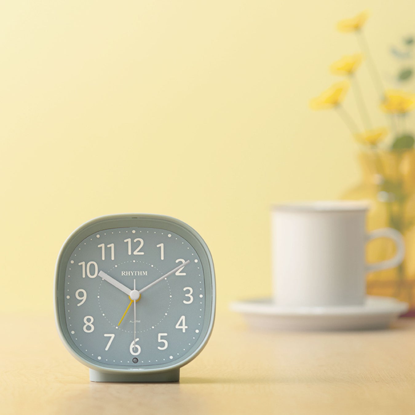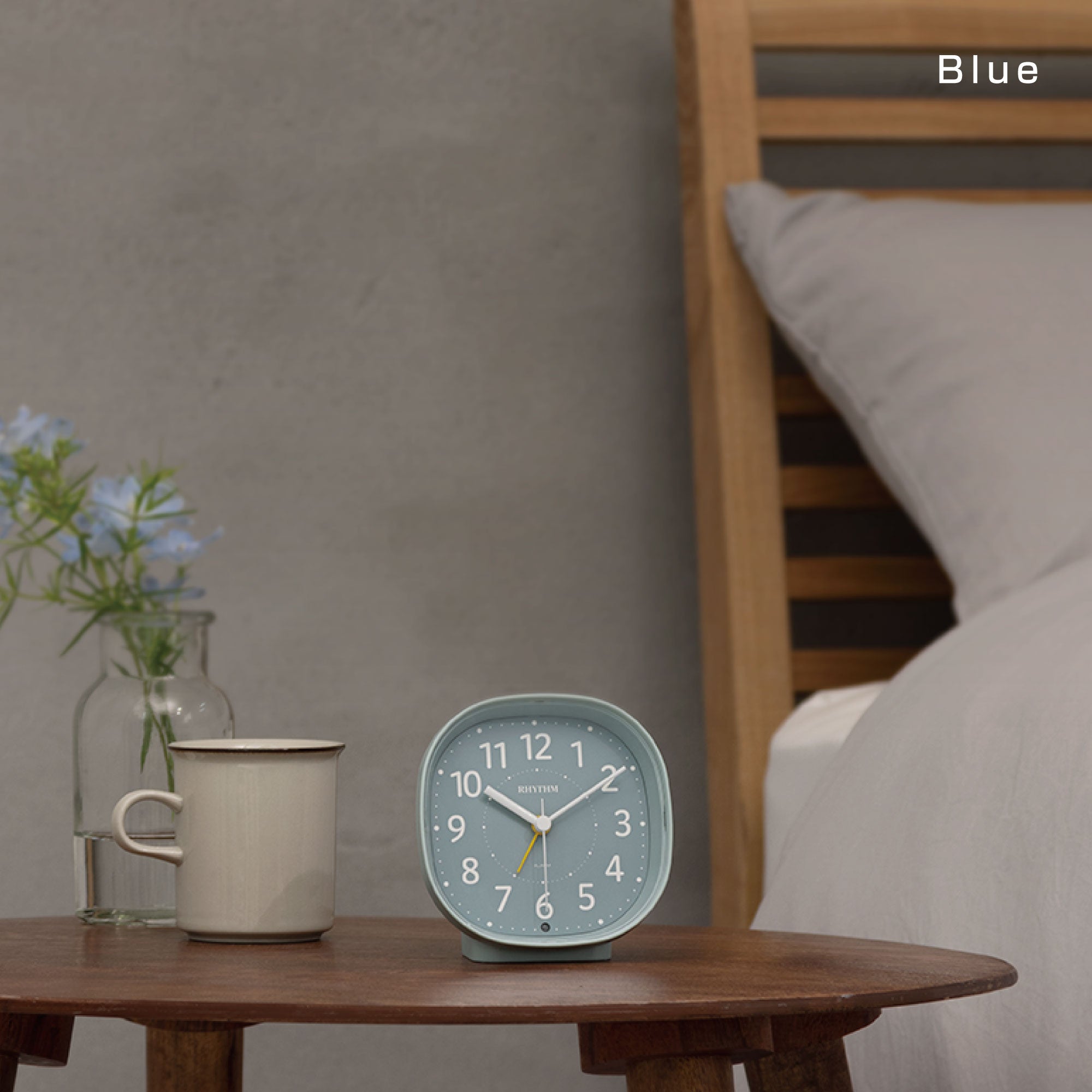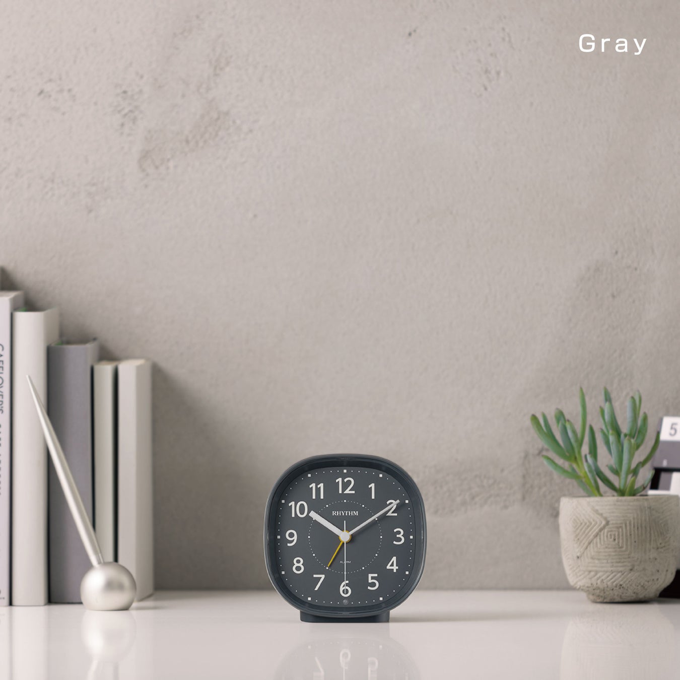 大きめの文字板が見やすく、柔らかいフォルムがくらしになじみやすいクオーツめざまし時計です。モダンな2種類のカラーリングからお選びいただけます。