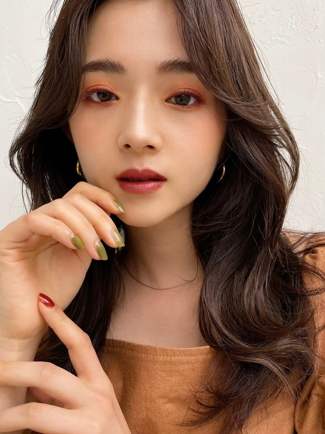 ニュートラルなブラウンがおすすめ。ほんのり色味を入れる場合は、ラベンダーやパープルを選ぶと、髪と肌をより綺麗に見せてくれます。