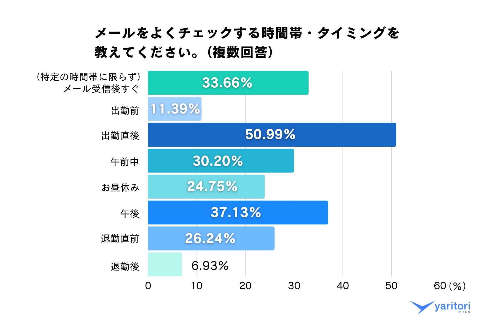 メールをチェックする時間帯・タイミングに関しては「出勤直後」が最多となりました。